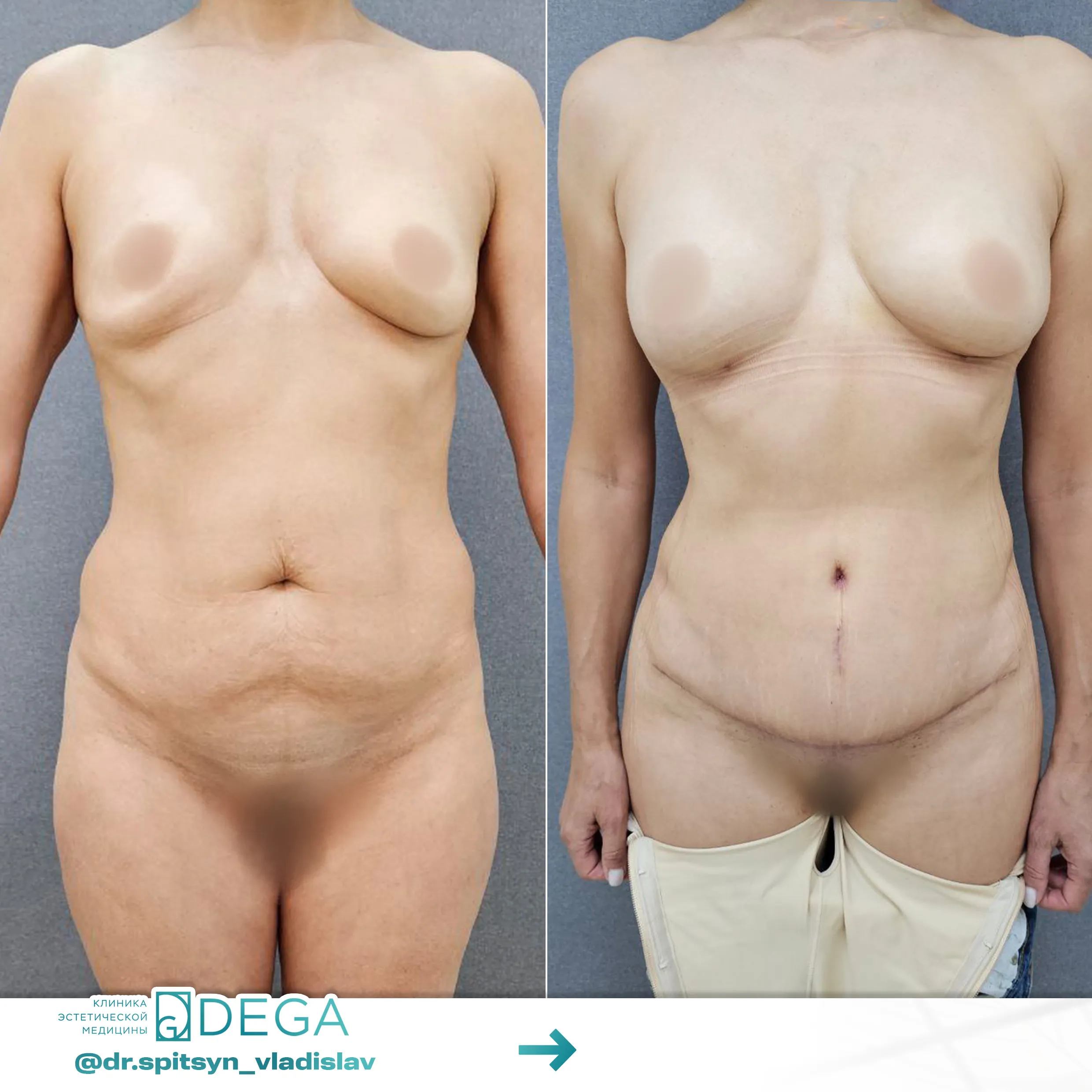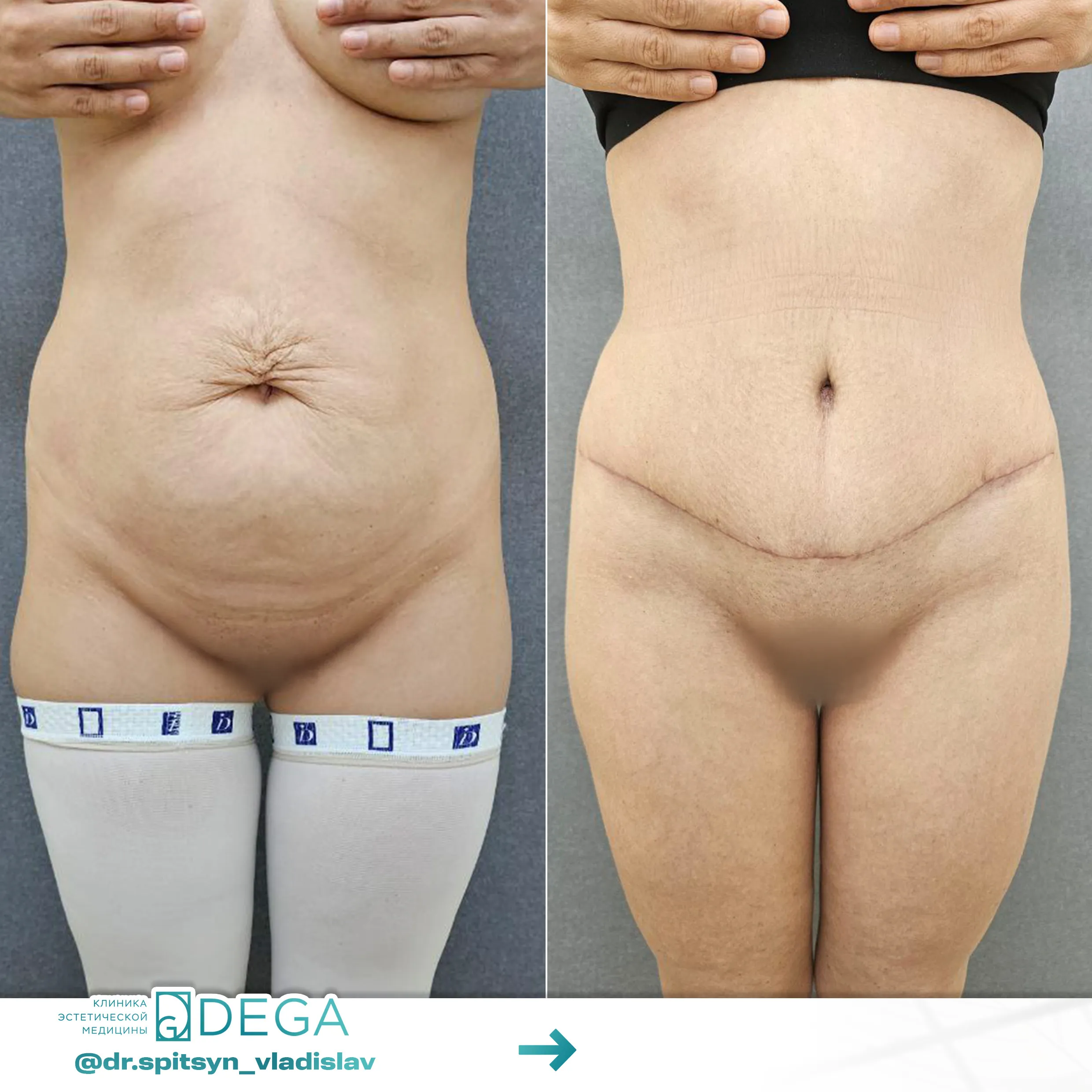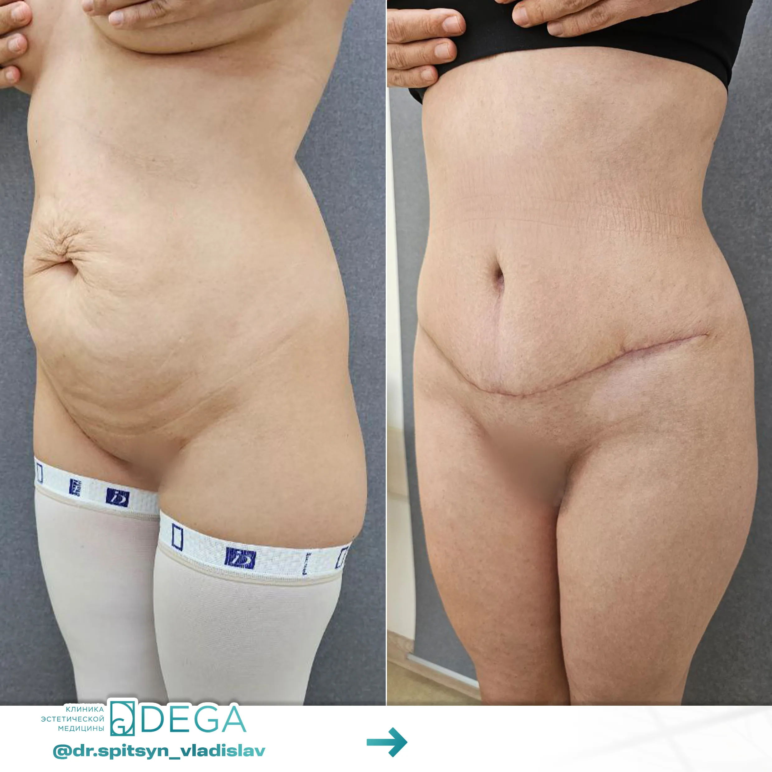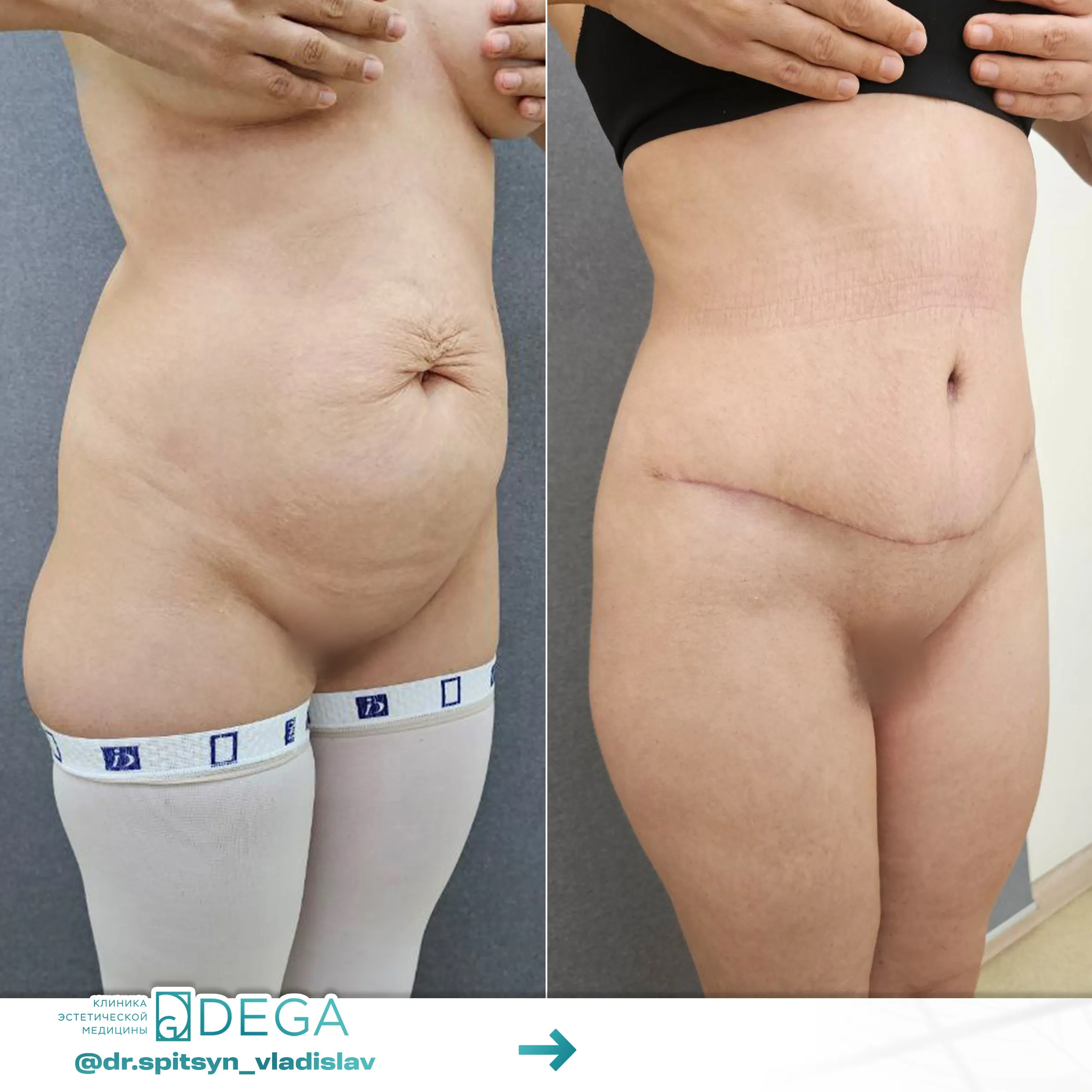 После выполнения операции на протяжении 4-6 недель нужно носить специальное компрессионное белье. Оно позволяет уменьшить отвисание кожи и предотвращает отеки тканей. Восстановление фигуры зависит от объема операции, чем больше жира удаляли, тем дольше проходит процесс реабилитации.